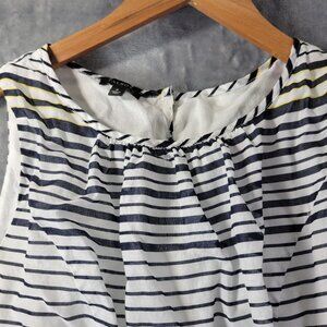 Fresh Talbots women’s size 6 sleeveless dress 💛🖤🤍 featuring chic horizontal stripes in black and white with a bold yellow colorblock hem. Lightweight and breezy with a gathered elastic waist for a flattering fit. Perfect for summer, casual outings, or weekend wear.