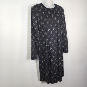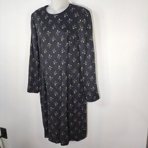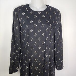 Talbots Womens Dress Size 8 Black Rayon Wool Foral Lined Long Sleeve Knee Length
