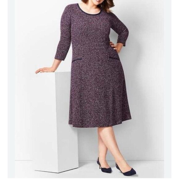 Talbots Womens Dress Sz 18 Twisted Boucle Tweed Knit Midi Fit & Flare