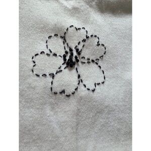 Talbots Womens Embroidered Black Floral White Top L Cotton