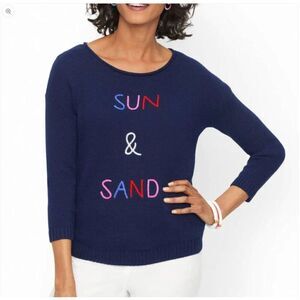 Talbots Women's Embroidered Sun & sand 3/4 Sleeve Navy Sweater Size Small Petite