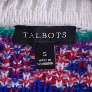 Talbots Womens Fair Isle Christmas Long Open Front Cardigan S