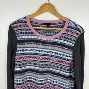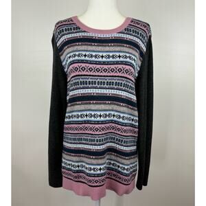 Talbots Womens Fair Isle Lambswool Blend Pink Multicolor Crewneck Sweater Sz M