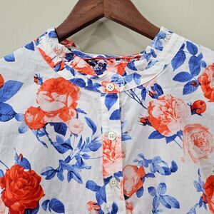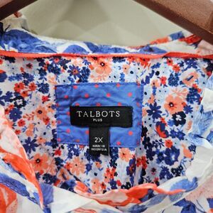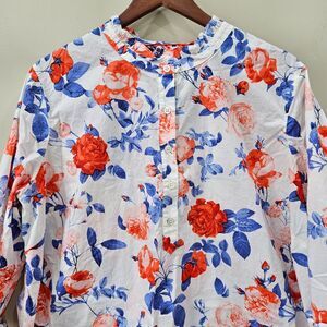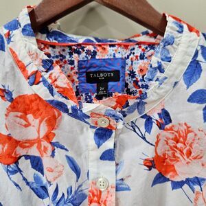 Talbots Womens Floral Popover Top Plus Size 2X Multicolor Roll Tab Sleeves Boho