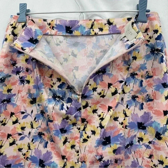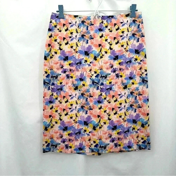 Talbots Women’s Floral Skirt 4 Blue Yellow Pencil Back Slit Zippered Unlined