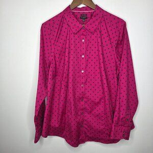 Talbots Womens Fuchsia Geometric Button Up Blouse Size 18W Wrinkle Resist Career