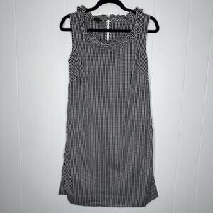 Talbots Women’s Gingham Pleated Neck Shift Dress Black White Size 10