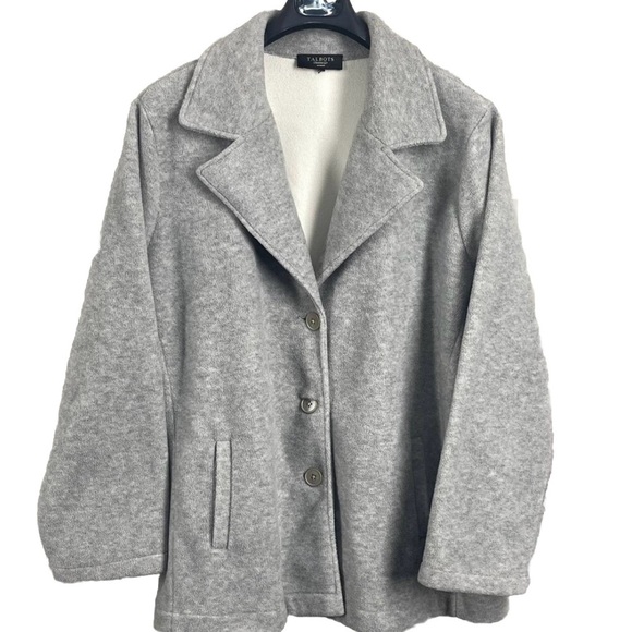 Talbot’s Women’s Gray Pea Coat Sz 1X Single Breasted Fleece Collared Pockets
