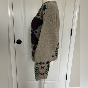 100% wool button cardigan sweater. Knitted by hand. Size medium petite. No flaws.