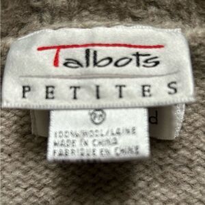 Talbots Women’s Gray 100% Wool Button Cardigan Size Medium Petite Hand Knit