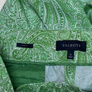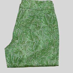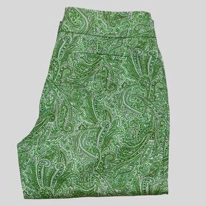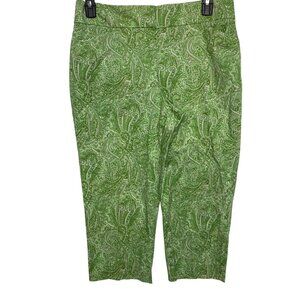 Talbots Womens Green Paisley Curvy Capri Pants Cotton Blend Size 12