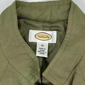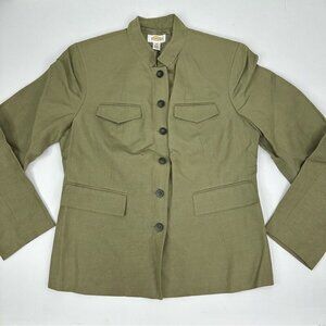 Talbots Women's Green Silk Linen Mandarin Collar Button Up Luxury Blazer 10/C39