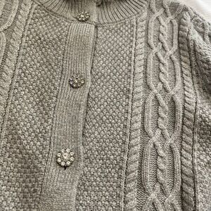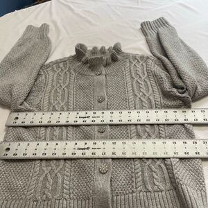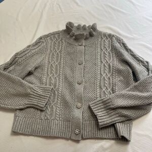 Talbots Women’s Grey Cable Knit Ruffle Rhinestone Mockneck Cardigan Size Large