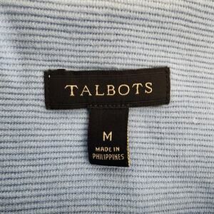 Talbots Womens High Neck Button Shoulder Top Medium Light Blue Ribbed Sleeveless