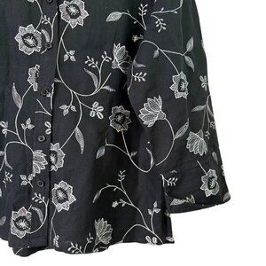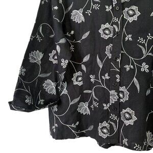 Talbots Women's Irish Linen Black Blouse Floral Embroidery 3/4 Sleeve Size Large