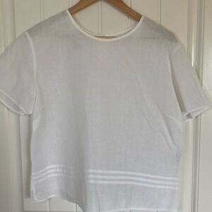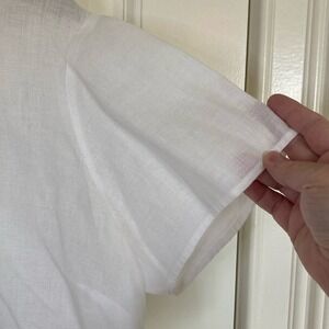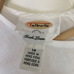 Talbots Womens Irish Linen Short Sleeve White Blouse Top Size 14 Classic Summer