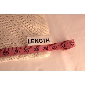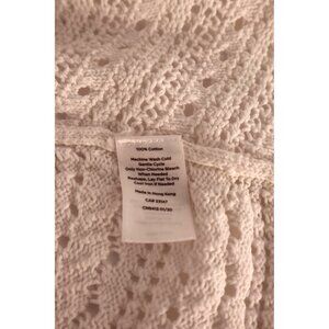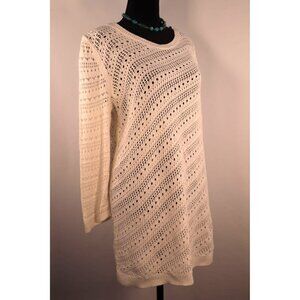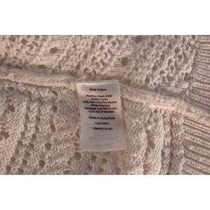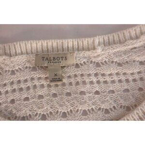 This ivory crochet sweater by Talbots is designed for an elegant yet comfortable fit. Crafted from high-quality cotton, it's suitable for various occasions and seasons. Its intricate pattern adds texture and style to your wardrobe, ensuring a sophisticated look. Ideal for layering or wearing alone, the sweater offers versatility and timeless appeal.