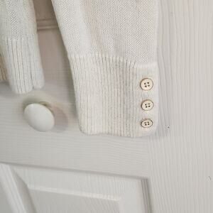 Super soft cable knit sweater by Talbots. Ribbed cuffs, hem, & neckline. 3 usable buttons on cuffs. Lambswool blend. Small stain on sleeve (see pics) but is not really noticeable. Overall, it is in very good condition.