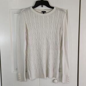 Talbots Women's Ivory Long Sleeve Cable Knit Lambswool Blend Sweater Size XS