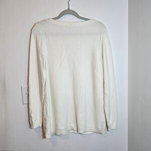 Talbots Women’s Ivory Waffle Knit Pullover Sweater Size M Cotton Blend Crewneck