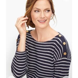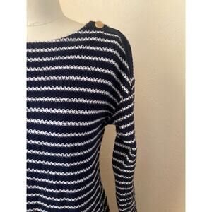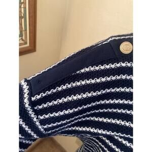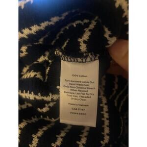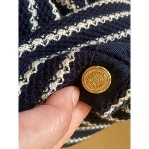 Talbots Women's Knit Sheath Dress Size MP Dark Navy Blue Striped