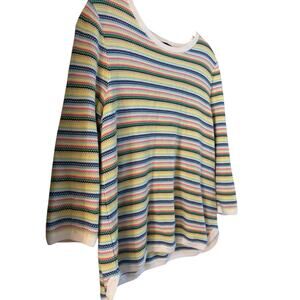 Talbots Women’s Knit Sweater Rainbow Stripe Zip Shoulder Size XL 3/4 Sleeves