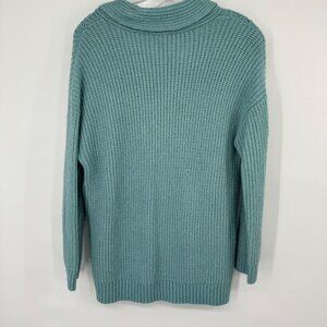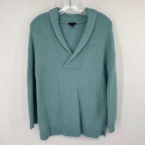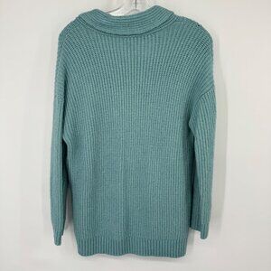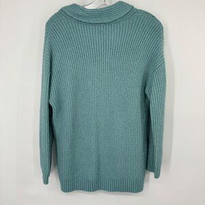 Talbots Womens Knit Sweater Shawl Collar size Medium teal Wool Blend