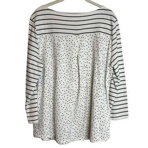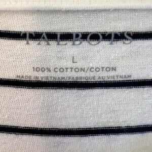 Talbots Women's Knit Top Large White Striped Polka Dot 100% Cotton 3/4 Sleeve