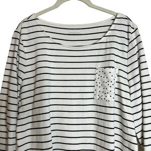 Talbots Womens Knit Top Large White Striped Polka Dot 100% Cotton 3/4 Sleeve