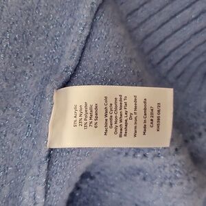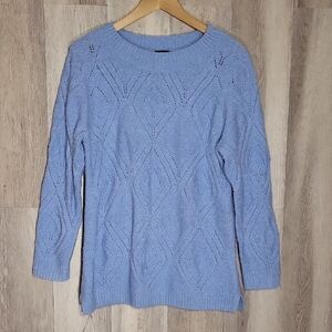🛍Talbots Womens L Petite Sweater Blue Open Cable Knit Metallic‎ Diamond Sparkly