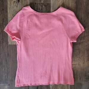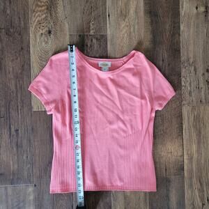 Talbots Womens L Short Sleeve Pink Orange Salmon Ribbed Sweater Shirt Summer Top