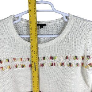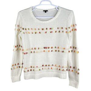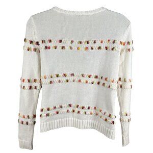 Talbots Womens L White Knit Sweater Rainbow Accents Space Dye Long Sleeve Top