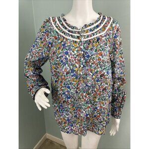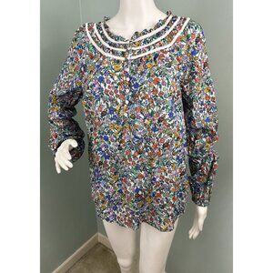 Talbots Women's Long Sleeve Multi-Color Floral Button Popover Blouse Top Size Medium