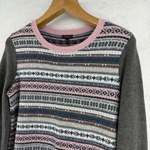 Talbots Women’s Lambswool Blend Fair Isle Sweater Size M Gray Pink Crew Neck