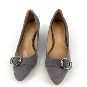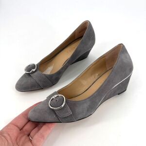 Talbots Women's Laney Kendall Suede Almond Toe Buckle Wedge Heels Gray Size 6