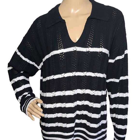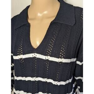 Talbots Women’s Large Johnny Collar Sweater Nautical Navy White Stripe