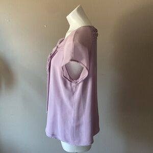 Talbots Women’s Lavender Floral Silk Short Sleeve Embellished Blouse Size 16