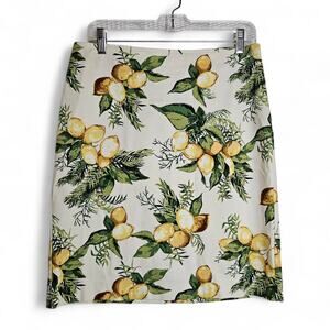Talbots Womens Lemon Blossom Fruit Novelty Print Cotton Short Skirt Size 8P