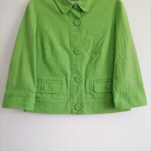 Talbots Womens Light Green 3/4 Sleeve Stretch Button Up Denim Jacket Size 12