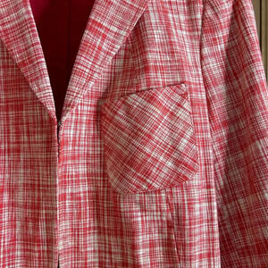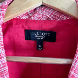 Talbots Womens Linen Blend Tweed Blazer Red Plaid Jacket Classy Mature Valentine