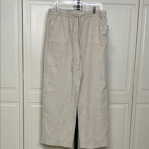 Talbots Women’s Linen Blend Wide Leg Pants Beige Sz 10 NWT Lagenlook Neutral