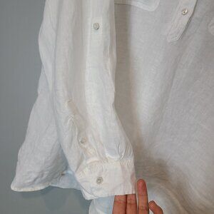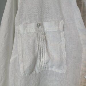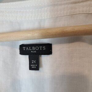 Talbots Womens Linen Blouse Top Plus 2X White Coastal Minimalist Flowy Resort