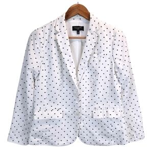 Talbots Womens Linen & Cotton Polka Dot Blazer 6P White & Navy Classic Preppy