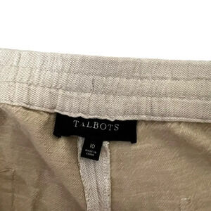 Talbots Women's Linen Pants Size 10 Beige Straight Leg Drawstring Waist