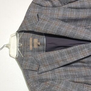 Talbots Womens Long Blazer Countryside Plaid Italian Wool Neutral Plus Size 14P