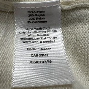 - 55% Cotton, 20% Rayon, 20% Nylon, 5% Cashmere