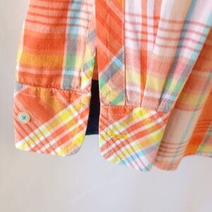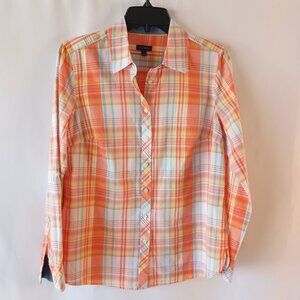 Talbots Women’s Long Sleeve Orange Plaid Button Front Cotton Blouse Size S
