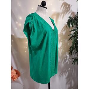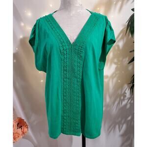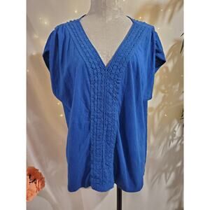 Talbots Womens Lot of 2 V-Neck Crochet Lace Short Sleeve Tops Plus Size 2X Cotton Blue Green