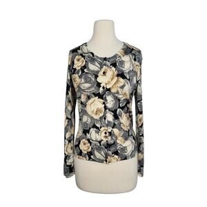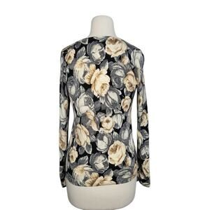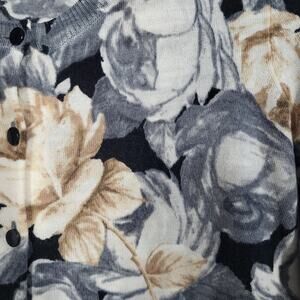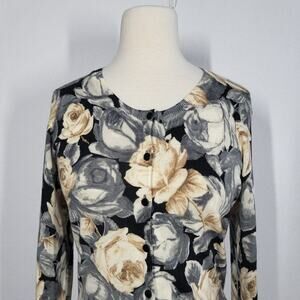 Talbots Women’s M Gray Tan Floral Cardigan Sweater 100% Merino Wool Office Work