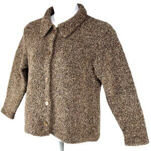 Talbots Womens Size Medium 95% Wool 5% Nylon Cardigan Made In Italy Marled Brown Grandmacore Timeless